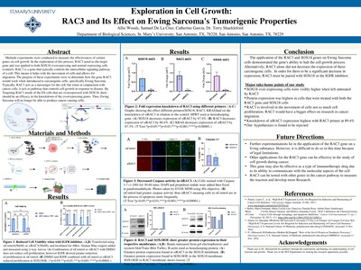 Multiple experiments were conducted to measure the effectiveness of certain genes on cell growth. In the exploration of this process, RAC3 acted as the target gene and was applied to both SOX18 overexpressing and normal expressing cells (control). RAC3 is a gene that typically controls the intercellular signaling pathway of a cell. This means it helps with the movement of cells and allows for migration.The purpose of these experiments were to determine how the gene RAC3 would work when introduced to carcinogenic cells, specifically Ewing Sarcoma. Typically, RAC3 acts as a messenger for the cell, but when in conjunction with cancer cells, it acts as pathway that controls cell growth in response to disease. By Targeting RAC3 inside of the ES cells that are overexpressed with SOX18, there should be an efficacy in the knockdown of the overexpressing genes. Thus, Ewing Sarcoma will no longer be able to produce cancer causing cells.