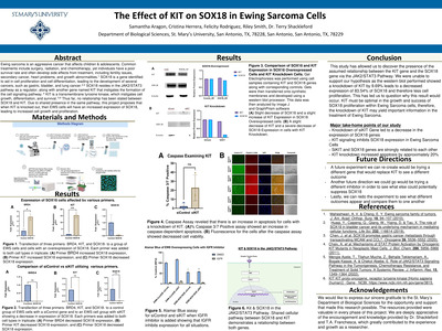 Ewing sarcoma is an aggressive cancer that affects children & adolescents. Common treatments include surgery, radiation, and chemotherapy, yet individuals have a poor survival rate and often develop side effects from treatment, including fertility issues, secondary cancer, heart problems, and growth abnormalities.1SOX18 is a gene identified to aid in cell proliferation and cell differentiation, leading to the development of several cancers, such as gastric, bladder, and lung cancer.2,3 SOX18 resides in the JAK2/STAT3 pathway as a regulator, along with another gene named KIT that instigates the formation of the cell signaling pathway.4KIT is a transmembrane tyrosine kinase, which instigates cell growth, differentiation, and survival.5,6Thus far, no relationship has been stated between SOX18 and KIT. Due to shared presence in the same pathway, this project proposes that when KIT is knocked out, then EWS cells will have an increased expression of SOX18, leading to increased cell growth and proliferation.