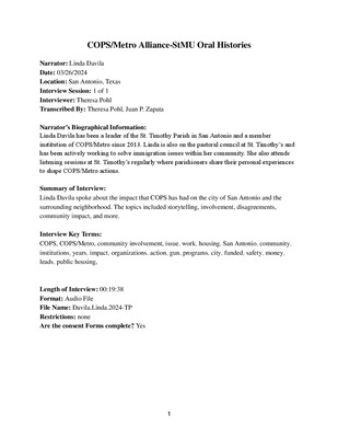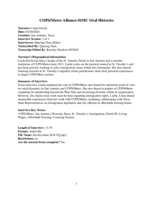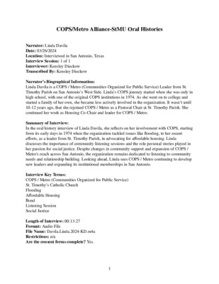 COPS/Metro Alliance-StMU Oral Histories with Linda Davila
