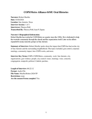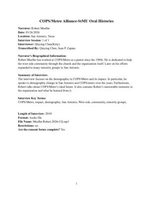 COPS/Metro Alliance-StMU Oral Histories with Robert Mueller
