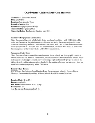 COPS/Metro Alliance-StMU Oral Histories with Sister Bernadette Barrett