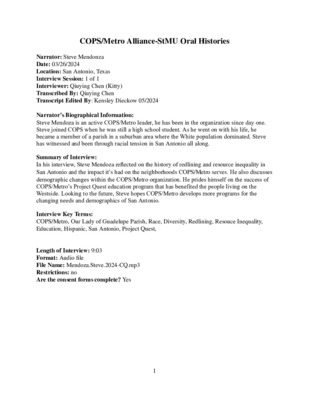 COPS/Metro Alliance-StMU Oral Histories with Steve Mendoza