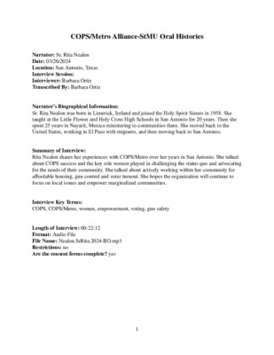 COPS/Metro Alliance - StMU Oral Histories with Sister Rita Nealon