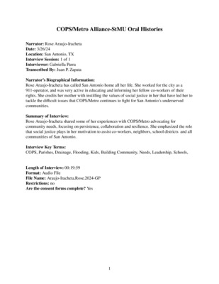 COPS/Metro Alliance-StMU Oral Histories with Rose Araujo-Iracheta