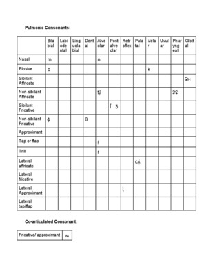 This document contains all of the phonemes present in Theshalshe with their corresponding glyphs.