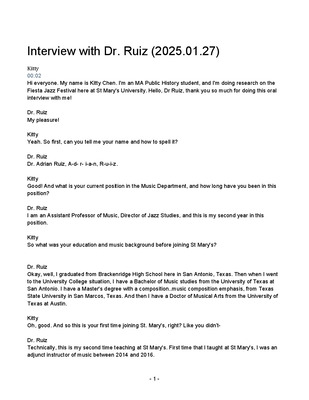 Dr. Ruiz recalls his experiences at the Feista Jazz Festival as performer, director, and other roles. He tells how he prepares for the festival, the challenge of directing it, and much more.