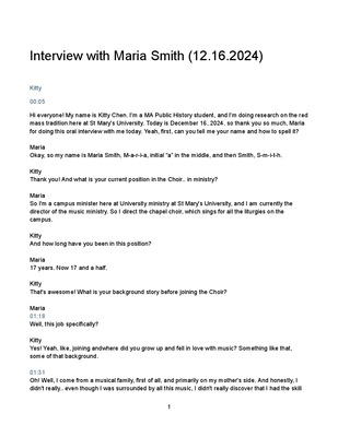Maria tells her story of growing up with music, and how she joined St. Mary's community and started the Choir. She recalls her expereince in maintaining the Choir and providing music for masses of the school, included the Red Mass.