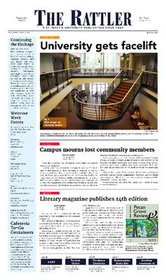 Founded in 1919, The Rattler is the student voice of St. Mary’s University in San Antonio, Texas. The newspaper documents campus life, academic and social issues, student opinion, and local and national events as they relate to the University community. Content typically includes news articles, editorial commentary, arts and culture coverage, sports reporting, and advertisements.