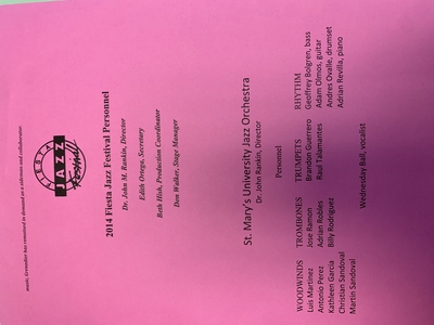 Programs, St. Mary's, Fiesta Jazz Festival, Personnel, San Antonio