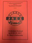 This is a photo of the first page of the program for the Fiesta Jazz Festival 2017 held at St. Mary's University by the St. Mary's University Department of Music, The Fiesta San Antonio Commission, KRTU 91.7, the John L. Santikos Chartiable Foundation of the San Antonio Area Foundation.