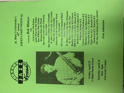 Flier, St. Mary's, Fiesta Jazz Festival, Bob Mintzer, Pecan Grove, University Center, San Antonio