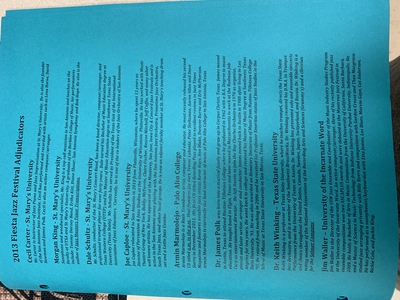 Programs, Schedules, St. Mary's, Fiesta Jazz Festival, Adjudicators, San Antonio
